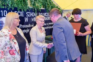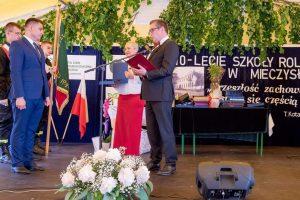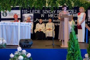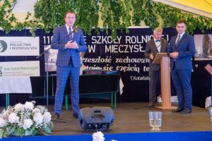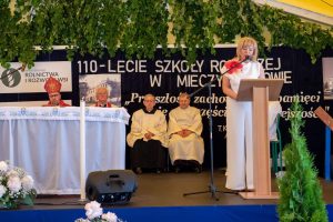 Zacni goście podzielili się swoimi wspomnieniami związanymi z Mieczysławowem oraz na ręce Pana dyrektora Dominika Królaka składali życzenia i gratulacje z okazji tak zacnego Jubileuszu, jakim jest 110-lecie istnienia Szkoły. Szczególne wspomnienia, pełne nostalgii, wzruszeń i dumy, popłynęły z ust Pana Posła Tadeusza Woźniaka, który wymienił Mieczysławów jako jedno z miejsc, do których będzie wracał zawsze, niczym do rodzinnego domu