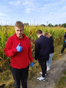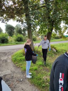 Udało nam się posprzątać teren wokół szkoły wraz parkiem, teren wzdłuż drogi oraz teren wokół Internatu.