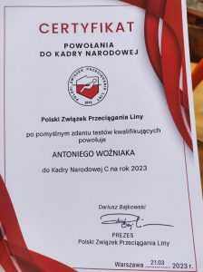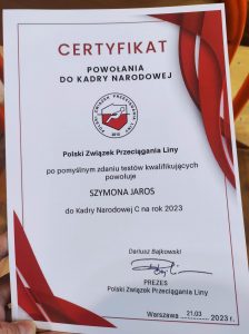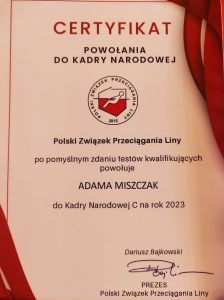 Chłopcy w składzie: Karol Sawicki, Antoni Woźniak, Michał Zakrzewski, Adam Miszczak i Szymon Jaros, po pomyślnym zdaniu testów kwalifikacyjnych, odebrali certyfikaty powołania do kadry narodowej Polskiego Związku Przeciągania Liny. 🏅🎖️