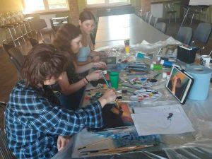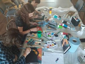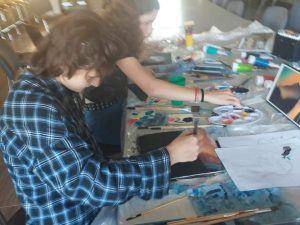 Zajęcia plastyczne, jeszcze w czasie wolnym od lekcji 🙂 Wychowawcy w internacie zarażają swoimi pasjami.