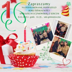 Spółdzielnia Uczniowska ” z Sercem” zaprasza społeczność szkolną na urodzinowe przyjęcie.![]()