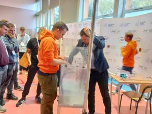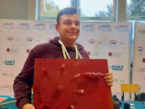We wtorek, 21 listopada, w Zespole Szkół Zawodowych Nr 1 w Skierniewicach odbył się jeden z etapów ogólnopolskiego Turnieju Maszyn Wodnych. Drużyna z naszej szkoły o nazwie „MIETEK TEAM” składała się z uczniów klasy VTMŻ: Szymona Jaroszczaka, Kacpra Rybickiego i Adama Cieślaka.