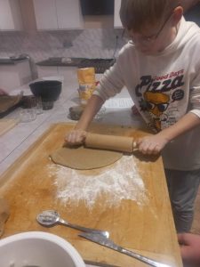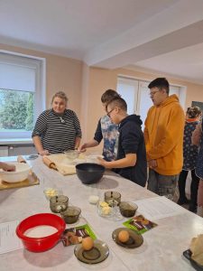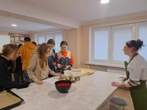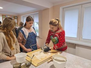 Warsztaty z pieczenia pierników nie udałyby się tak znakomicie gdyby nieoceniona pomoc uczniów klasy 2TMŻ, a przede wszystkim Oliwii Kasztelan. Poczęstunek przygotowały uczennice klasy 5TMŻ.