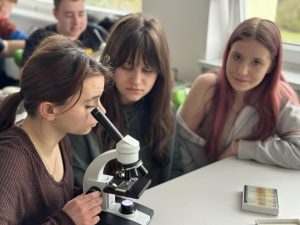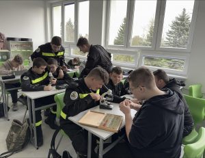 Uczniowie klasy 1TMA podczas lekcji biologii