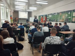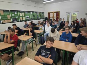 Uczniowie czynnie uczestniczyli w prelekcji oraz warsztatach z zakresu pierwszej pomocy przedmedycznej.