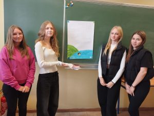 Uczennice klasy 1TW w trakcie prezentacji swoich prac.