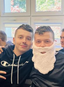 Uczniowie klas drugich chętnie wzięli udział w zabawie na najlepszą brodę.