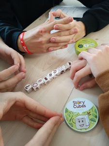 Dzisiaj klasa 2 TMA wykorzystała grę „Story cubes” i opowiedziała swoje historyjki z wykorzystaniem czasów przeszłych.