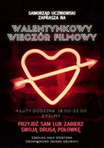Plakat zachęcający do wzięcia udziału w wieczorze filmowym