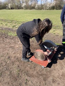 Wielką atrakcją, zwłaszcza dla męskiej części naszej szkoły, był pokaz sprzętu strażackiego przeprowadzony przez druhów z OSP Wały.