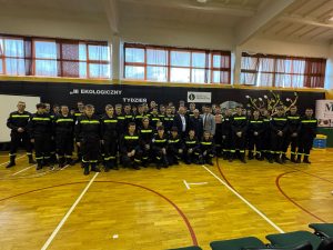 Równocześnie przeprowadzono szkolne zawody strażackie dla uczniów klas mundurowych. W kategorii mężczyzn trzecie miejsce zajął Sławek Lewańczyk