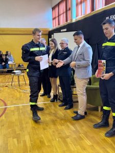 Kolejnym ważnym wydarzeniem była prelekcja Starszego brygadiera Pawła Frątczaka, Rzecznika Prasowego Komendanta Głównego Państwowej Straży Pożarnej. Skierowana ona była nie tylko do uczniów, ale także do zaproszonych gości i pracowników naszej szkoły. Pan Frątczak przybliżył nam na czym polega praca strażaków oraz jaka odpowiedzialność za bezpieczeństwo obywateli na nich spoczywa.