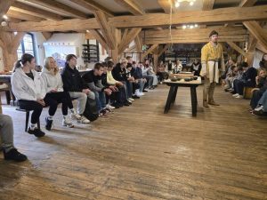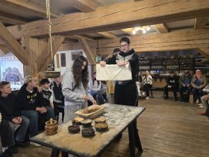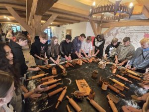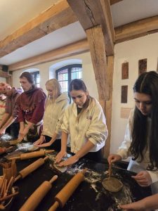 Następnie młodzież uczestniczyła w warsztatach wypieku toruńskich pierniczków. Poznali tajemną recepturę, na podstawie której sami przygotowali korzenne smakołyki